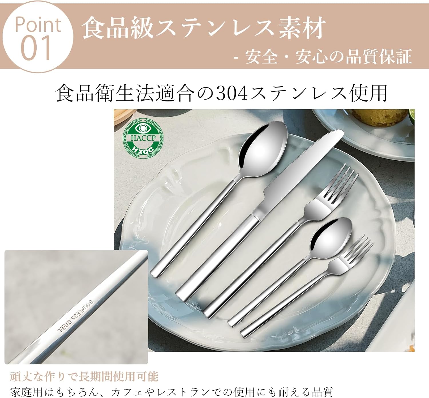 - 【実用性重視の5本セット】スプーン、フォーク、ナイフを含む基本構成で、家庭用にも来客用にも対応。食事シーンを選ばず使えます。